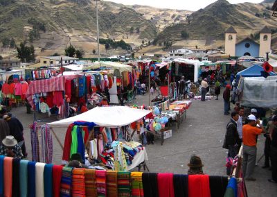 On Saturday there is a market in Zumbagua village, and Sunday – Wednesday in Pujili village, Here, the indigenous vendors and buyers arrive riding on llamas and donkeys to trade their products, daily goods, and animals. These markets are located on our way to Quilotoa volcano, which holds inside its leaps a spectacular lake. And finally, a visit to Baños cloud Forest is the perfect combination