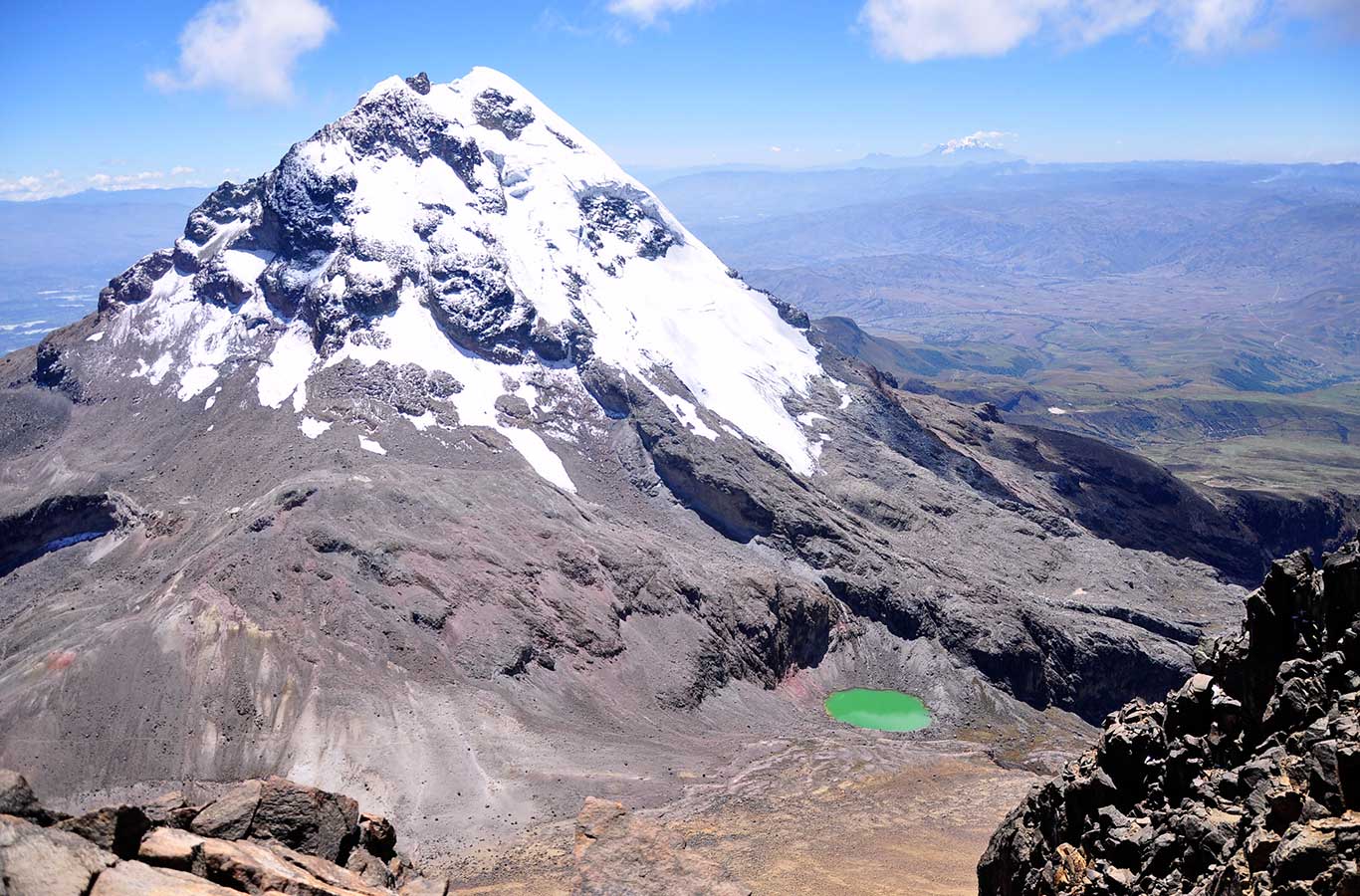 the North Peak is especially recommended for people who are training and seeking acclimatization before attempting major peaks. Because of the poor services of the “Nuevos Horizontes” hut, (3740 m) we prefer staying overnight in local Haciendas located in the valleys below. There we have comfort, great local food and better rest for the next long day hike.