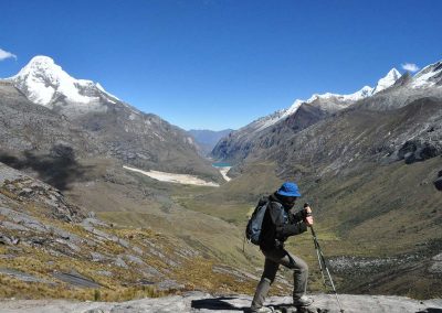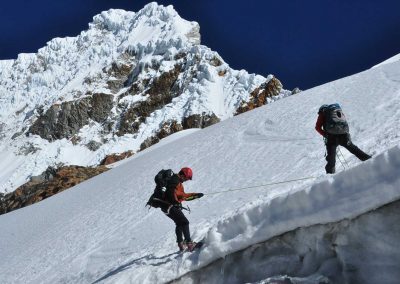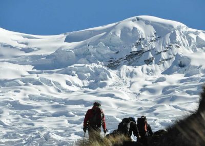 Today we will carry on uphill towards Punta Union 4759mt. Georges views of Huascaran-Chopicalqui- Taullaraju etc. Afterwards we will descend to camp 3 at Cachinapampa 3745mt.