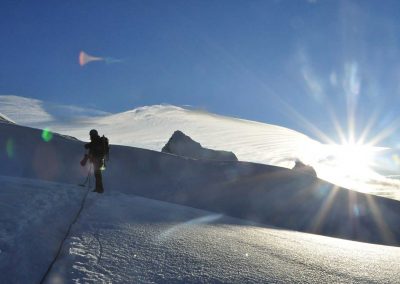 We will wake up at 01h00 and get ready for the summit, we will head to the col Huandoy/Pisco 5450mt. and head to the ridge, fording some crevasses till we get the final pitch to the summit 5760mt. Fantastic views of the Cordillera Blanca and the most important peaks will be observed, down hill to the Hut, for relax, packing and back to Cebollapampa where the bus is waiting to drive back to Huaraz.