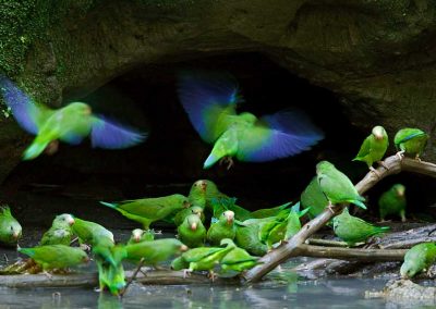 Day 3. After breakfast departure to the Napo River to board the boat and visit the parrot-clay lick at Yasuní National Park for a wonderful view of hundreds of parrots. Continue with a hike on the south of the Napo inside Yasuní National Park considered for scientists like the most biodiverse area in the world, here, some species that cannot be found in the north might be spotted: golden-mantled tamarind and spider monkeys, Blue and yellow macaws and with a bit of luck a close encounter with white-lipped or collared peccaries. Head back to Sani Community Center to visit a native house to get a taste of how a typical Kichwa family lives.